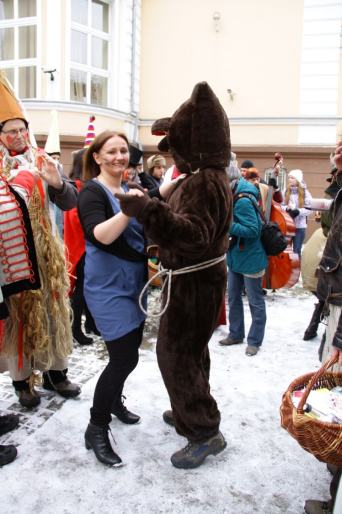 Zgodnie z tradycją taniec z niedźwiedziem zapewnia szczęście i dobrobyt na całym rok. (Fot: Piotr)
