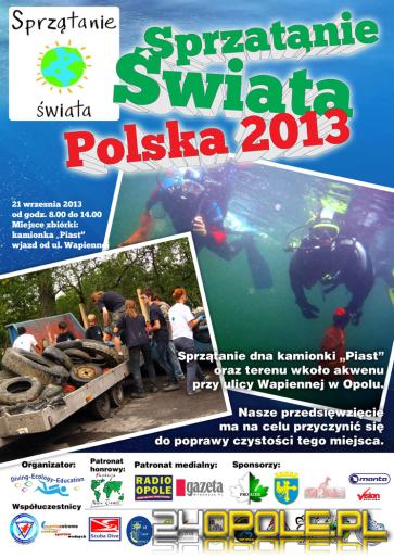 W sobotę w ramach akcji "Sprzątanie świata" opolscy nurkowie będą zbierać śmieci z dna kamionki Piast przy ul. Wapiennej w Opolu. Zapraszają do współpracy mieszkańców miasta, którzy mogą pomóc uporządkować brzeg akwenu.