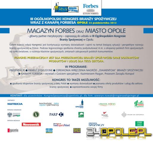 W trakcie 3. Ogólnopolskiego Kongresu Branży Spożywczej wręczone zostaną także specjalne nagrody – Diamenty Branży Spożywczej. Organizatorami imprezy są Magazyn Forbes oraz Miasto Opole, jako główny partner merytoryczny. Portal 24opole.pl jest patronem medialnym kongresu.