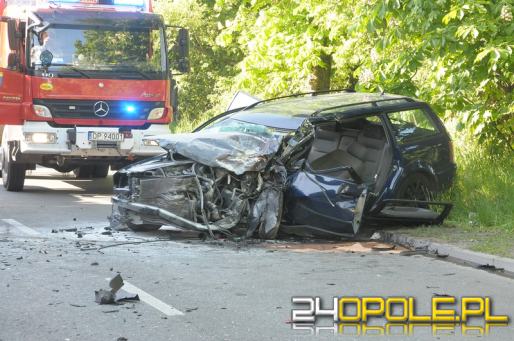 Mężczyzna prowadzący volkswagena był zakleszczony w pojeździe, uwolnili go dopiero strażacy przy pomocy specjalistycznego sprzętu. Kierowca trafił do szpitala.