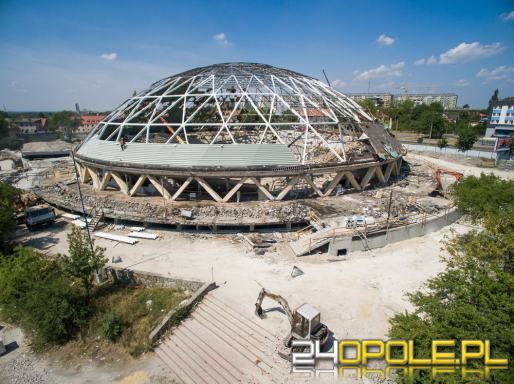 - Robotnicy ściągnęli już prawie całe poszycie dachu, jednocześnie rozpoczęło się montowanie pierwszej warstwy nowego poszycia. Konstrukcja została też zabezpieczona pod kątem przeciwpożarowym - mówi Anna Wesołowska z Miejskiego Ośrodka Sportu i Rekreacji w Opolu.
