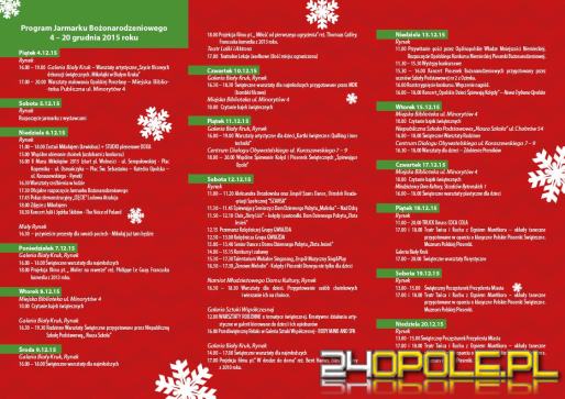 Jarmark rozpocznie się 4 grudnia - wówczas w Galerii Biały Kruk organizowane będą warsztaty artystyczne z szycia filcowych dekoracji bożonarodzeniowych. W sobotę, 5 grudnia otwarte zostaną budki z bogatym, specjalnie przygotowanym asortymentem.
