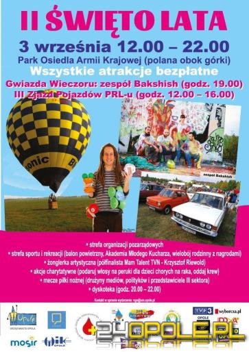 W parku nieopodal tzw. Górki Śmierci odbędzie się kolejna edycja Święta Lata. Dla wszystkich opolan - zarówno młodszych, jak i starszych – Centrum Dialogu Obywatelskiego przygotowało ogrom atrakcji. Impreza rozpocznie się 3 września o godz. 12 i potrwa do 22.
