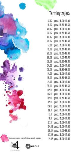 Warsztaty przeznaczone są dla niepełnosprawnych mieszkańców Opola w każdym wieku. Cykl warsztatów potrwa od lipca do grudnia b.r. Każde zajęcia trwają dwie godziny zegarowe, tematyka i technika są zróżnicowane, w miarę możliwości zindywidualizowane podejście do uczestników.