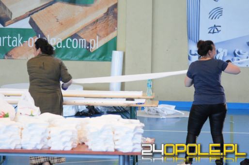 Setki maseczek dziennie wyjeżdża z hali sportowej OSIR w Komprachcicach. Wszystko dzięki inicjatywie społecznej, którą zapoczątkowała pani Irena Kacuba. Wszystkie panie szyją w domach ze względów bezpieczeństwa. Pracują też panowie, którzy rozwożą paczki.