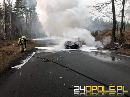 Dużo szczęścia miał kierujący samochodem osobowym, który po utracie panowania nad pojazdem uderzył w drzewo, po czym samochód stanął w płomieniach.