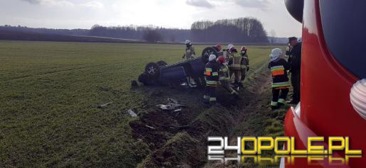 Dachowanie auta osobowego na trasie Niwnica-Domaszkowice. Jedna osoba ranna