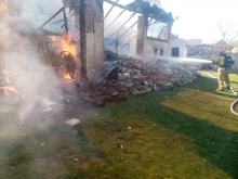 Płonąca stodoła znajdowała się pomiędzy budynkami, działania strażaków polegały na podaniu prądów wody w natarciu na pożar oraz obronie sąsiadujących budynków.