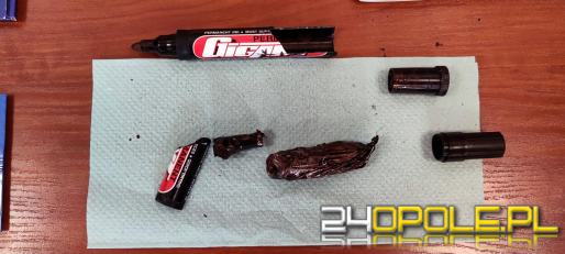 W kopercie oprócz kartki okolicznościowej i kredek znaleziono dwa czarne markery. I to one zwróciły uwagę czujnego funkcjonariusza. Okazało się, że w jednym z markerów wkład okazał się być zawiniętą w brązową folię substancją. Po rozcięciu opakowania ujawniono brunatny susz o wadze 8 gramów.
