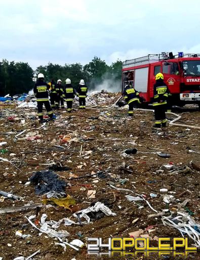 Kilkudziesięciu strażaków gasiło pożar na składowisku odpadów w Szymiszowie