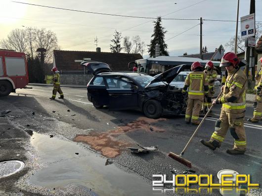 W środę 11 stycznia chwilę po godzinie 12.00 do opolskich służb ratunkowych wpłynęło zgłoszenie o zdarzeniu drogowym z udziałem samochodu ciężarowego i osobowego na skrzyżowaniu ulic Kwoczka i Prószkowskiej.