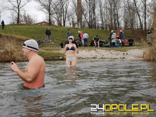 Mimo silnego wiatru na Kąpielisku Bolko zebrała się spora grupa chętnych do morsowania. Opolskie Morsy nie boją się załamania pogody.