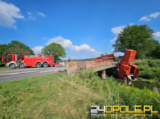 Akcja ratownicza w Starych Kolniach: kombajn wpadł do rzeki Stobrawa
