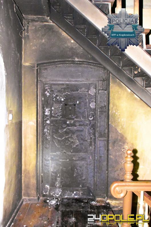 W sobotę, 13 lipca, około godz. 4:30 policjanci z krapkowickiej komendy zostali powiadomieni o pożarze w jednej z kamienic na terenie powiatu. Po przybyciu na miejsce zdzieszowiccy kryminalni ustalili, że doszło do podpalenia drzwi mieszkania, w którym przebywały trzy osoby. Mieszkańcy kamienicy zdążyli ugasić ogień przed przyjazdem służb.