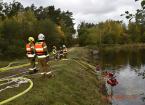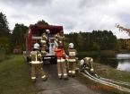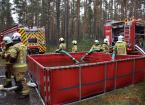 Strażacy ćwiczyli podawanie wody na duże odległości przy użyciu metod przetłaczania i dowożenia, a także reagowanie na dodatkowe symulowane zdarzenia - wypadek samochodowy z dwiema osobami poszkodowanymi i ratowanie osób przygniecionych przez drzewa.