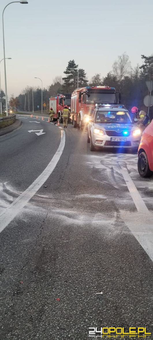W sobotni poranek, 8 listopada, służby zostały wezwane do kolizji na drodze krajowej nr 46 w rejonie ronda przy autostradzie A4. Kierowca forda fiesty, 24-letni mężczyzna, prawdopodobnie nie dostosował prędkości do warunków panujących na drodze i uderzył w barierki ochronne. Na szczęście nikt nie odniósł poważnych obrażeń.