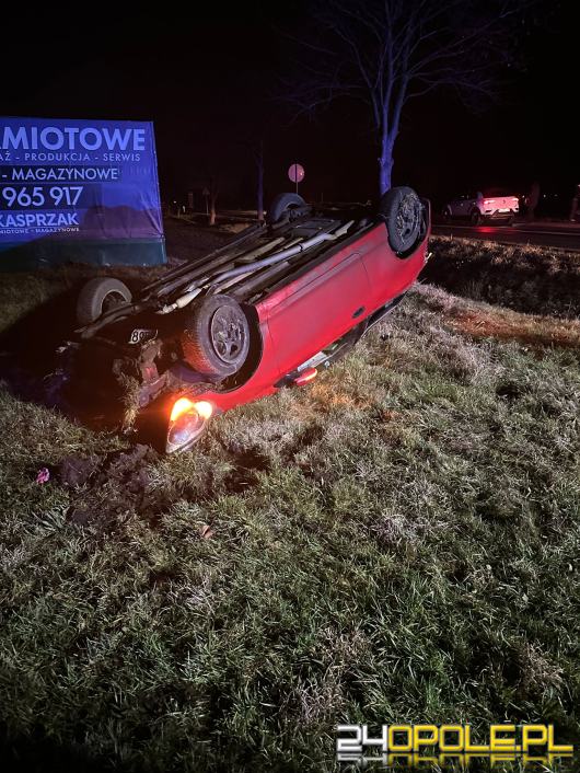 Samochód dachował między Dobrzeniem Wielkim a Chróścicami. Kierowca trafił do szpitala