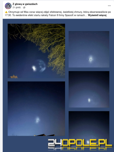 Po godzinie 17:30 w niedzielę 11 stycznia nad Polską można było obserwować efektowną, jasną chmurę na niebie. Jak wyjaśnia popularyzator astronomii Karol Wójcicki, zjawisko było związane ze startem rakiety Falcon 9 firmy SpaceX i manewrami jej górnego stopnia nad Europą.