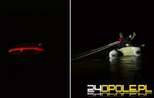 Zatopiony samochód jeszcze w nocy strażacy zabezpieczyli linami, a dzisiaj przed południem wyciągnęli na brzeg.